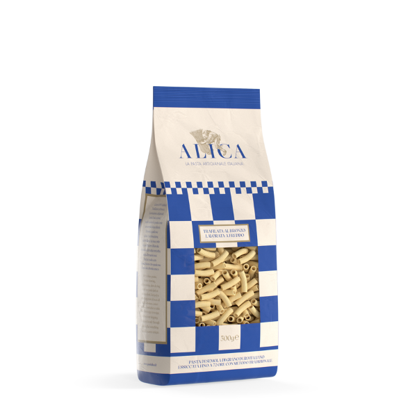 Pack of 1 single pack (500gr) of Alica Maccheroncini produced with selected 100% Italian grains, bronze drawn at low temperature to keep intact all the nutritional values and healthy proteins of durum wheat. They go well with fresh and light sauces. Perfect for recipes such as vegetable ragù, cold first courses and light sauces.