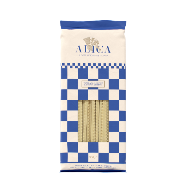 Confezione da 1 pacco singolo da 500gr di Tripoline Alica prodotti con grani selezionati 100% italiani, trafilati al bronzo a bassa temperatura per conservare intatti tutti i valori nutrizionali e le proteine salutari del grano duro. Ottimali con condimenti sostanziosi ma perfette anche con la salsa di pomodoro.